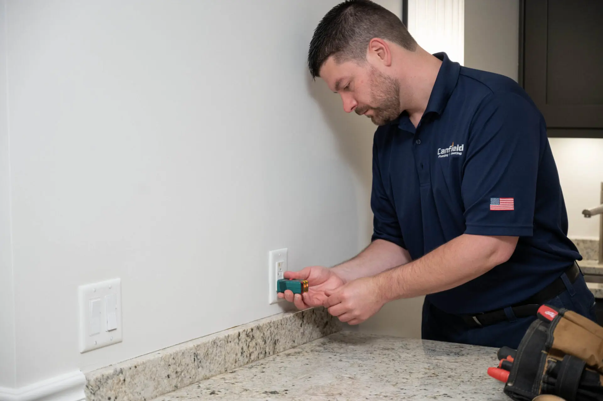 Canfield electrician installing an outlet in a residential kitchen in Grand Rapids